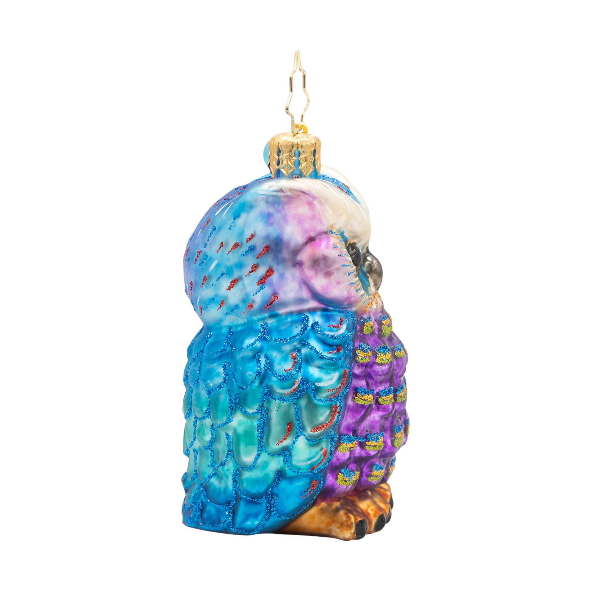 This isn’t your ordinary owl! With dazzling peacock feathers and a wise gaze, it brings beauty and brilliance to your holiday décor.
